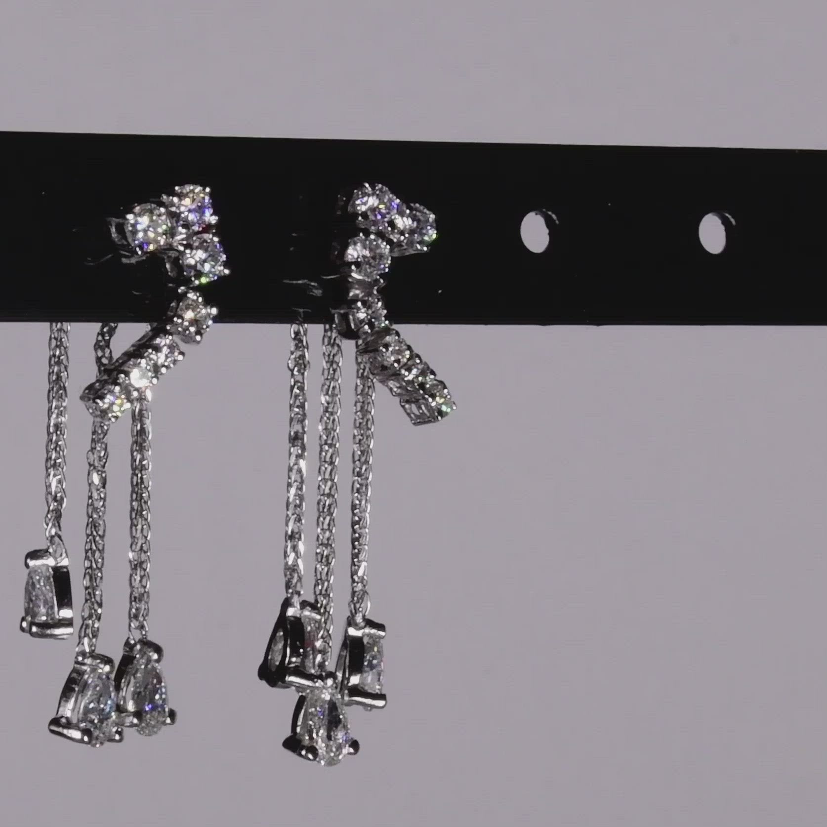 18k Gold and Diamond Hanging Pear Shaped Earrings - أقراط