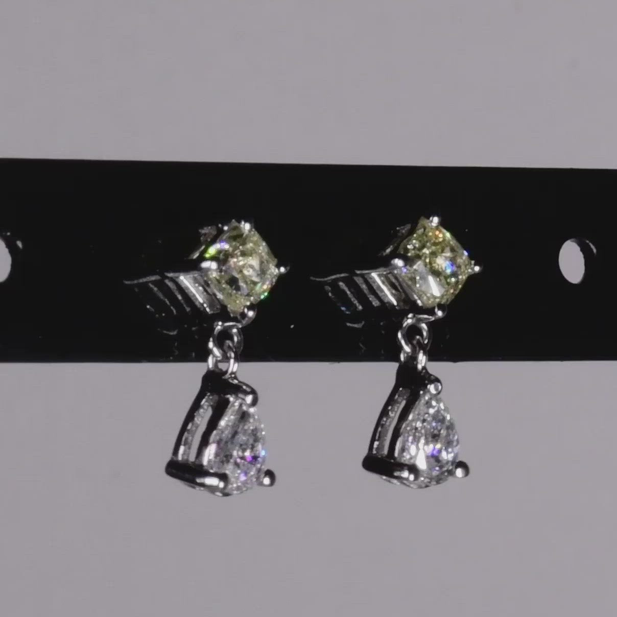 Yellow Cushion and White Pear Diamond Earrings - أقراط